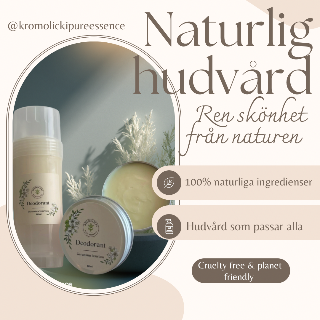 Våra produkter är alltid GMO-fria och innehåller inget aluminium. De eteriska oljor vi använder är GRAS-godkända (Generally Recognized As Safe), vilket innebär att de är godkända för användning i livsmedel.